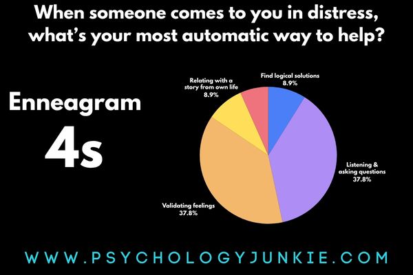 How does each Enneagram type help someone when that person comes to them in a state of distress? That was a question I asked my subscribers and readers in a survey I’ve been running for over a year now (you can take it here, if you’re interested). After looking at the results, there are some clear connections between Enneatype and responsiveness. Some types look for logical solutions while others are all about affirmation and listening.
