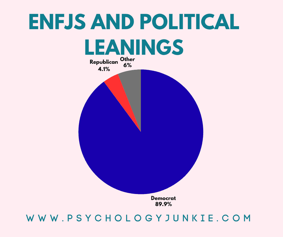 ENFJ (89.9% Democrat, 4.1% Republican, 6% Other)