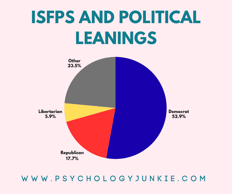 ISFP (52.9% Democrat, 17.7% Republican, 5.9% Libertarian, 23.5% Other)
