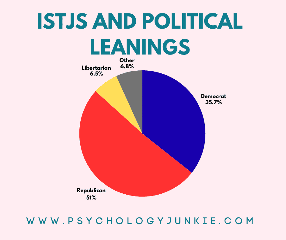 ISTJ (51% Republican, 35.7% Democrat, 6.5% Libertarian, 6.8% Other)