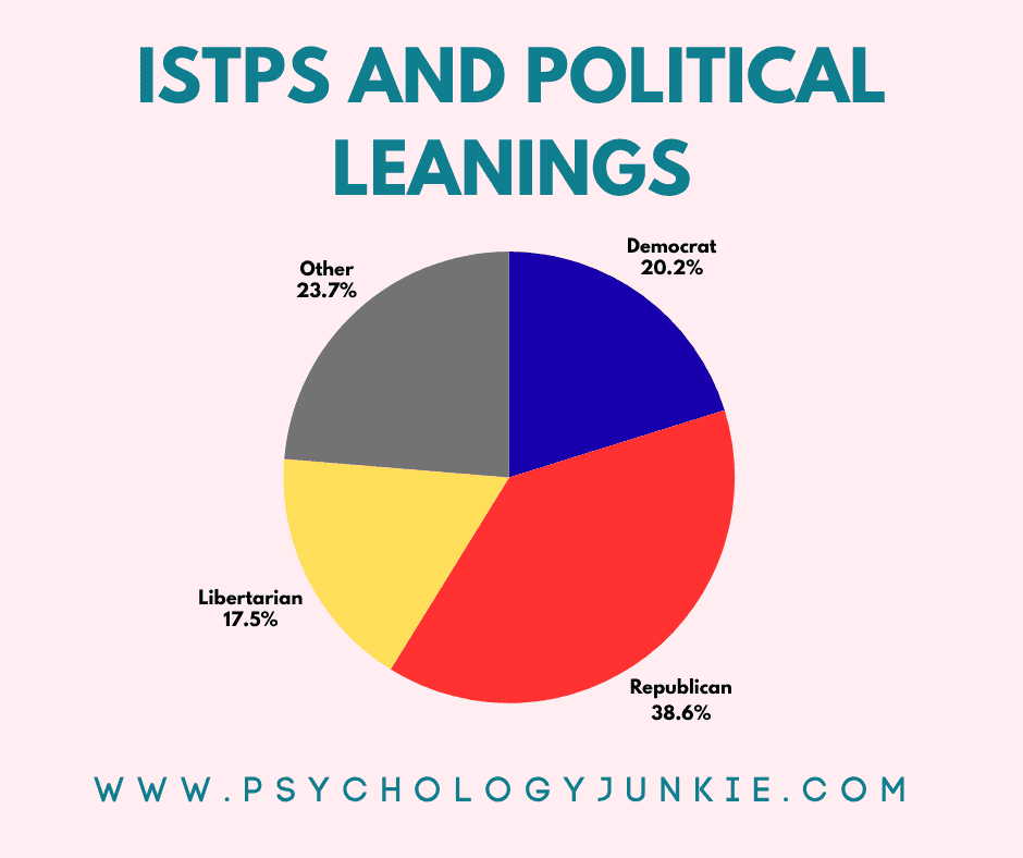ISTP (38.6% Republican, 20.2% Democrat, 17.5% Libertarian, 23.7% Other)