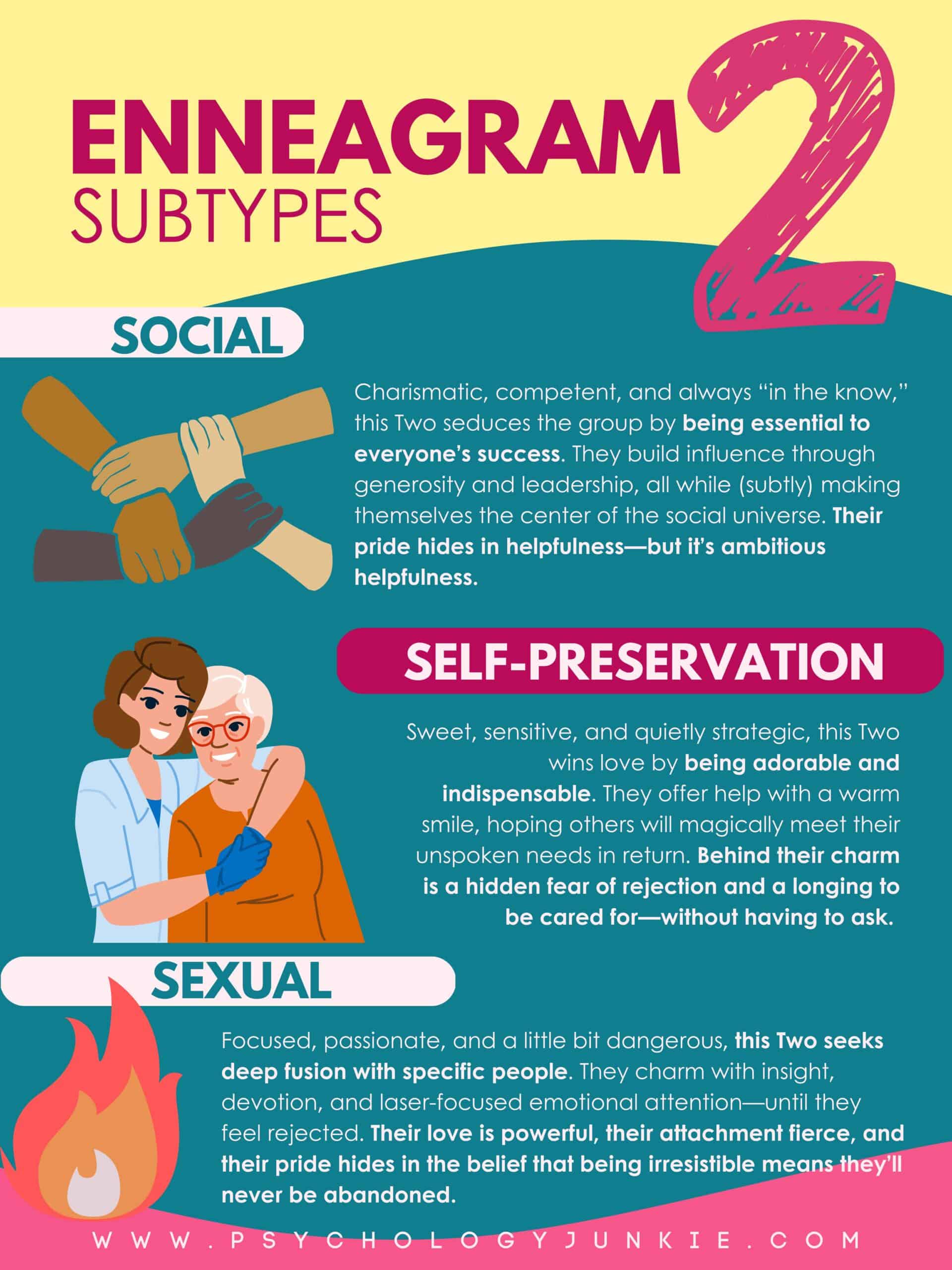 Each subtype takes the basic Two energy—this deep longing to be needed and loved—and filters it through a different survival lens.