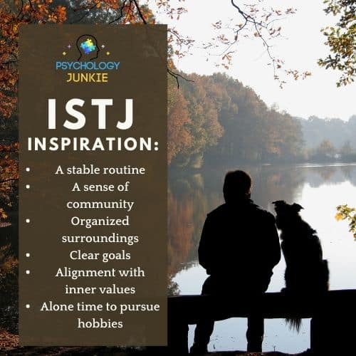 ISTJs may struggle with change. Consistency and routine are deeply important to ISTJs. They try to build a foundation of steadiness and tranquility in life; solid values, a comfortable home, and a clear routine and agenda. When change comes their way, they can feel overwhelmed and stressed by it. They need more time than many other personality types to adjust to change or unexpected events.